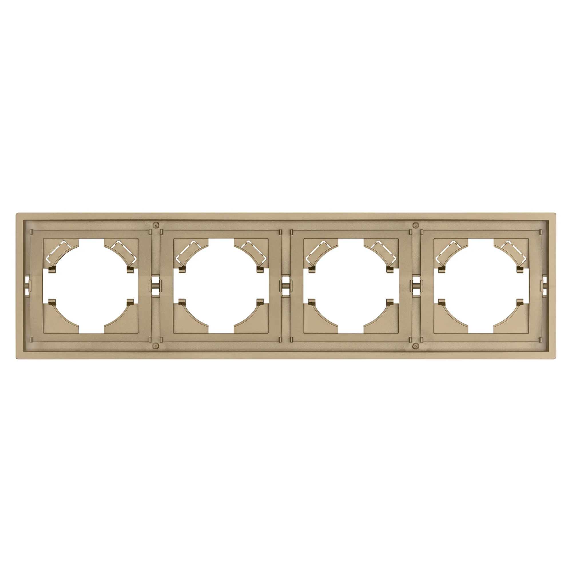Рамка пластиковая на 4 поста, под встраиваемый механизм. Цвет - матовый песочный, с Soft-Touch покрытием. Уровень герметичности IP20. Ориентация монтажа горизонтальная.